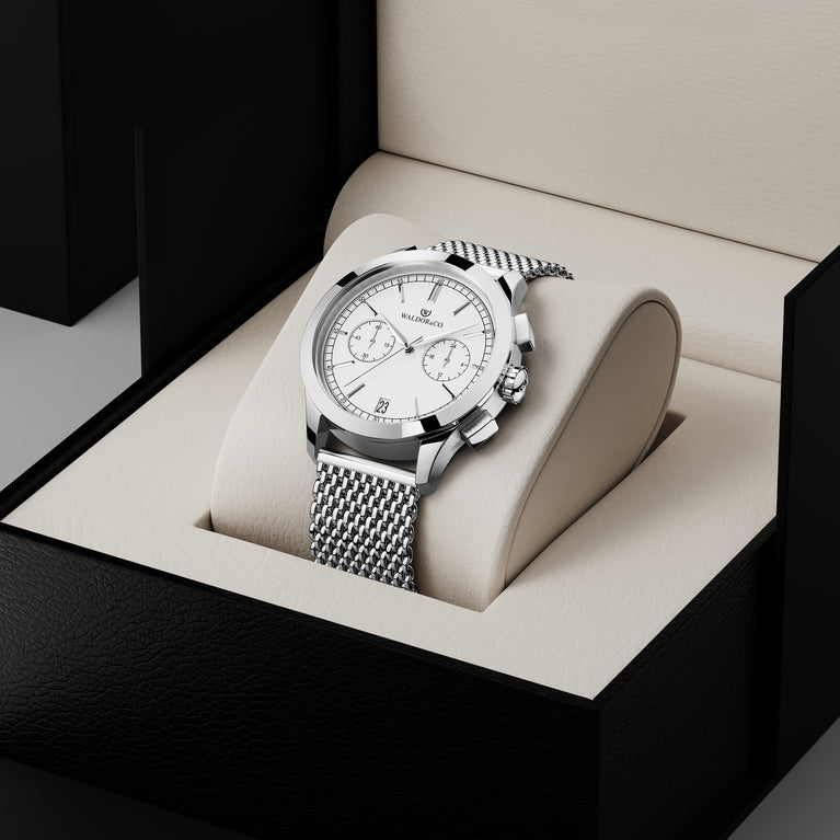 Enhanced with a sapphire crystal glass, renowned for its exceptional hardness, the Chrono 39 Sardinia is highly resistant to scratches and abrasions. The clarity of sapphire crystal is unparalleled, offering an unobstructed and crystal-clear view of the dial. Additionally, its low reflectivity enhances legibility in various lighting conditions, a crucial aspect for any timepiece.